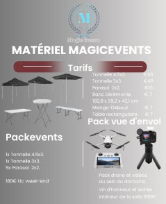 Vous souhaitez organiser un événement et avez besoin de matériel de qualité ? Magicevents est là pour répondre à tous vos besoins en matière de location d'équipement. Que ce soit pour une fête, un mariage, une réunion professionnelle ou tout autre type d'événement, nous avons tout ce qu'il vous faut.